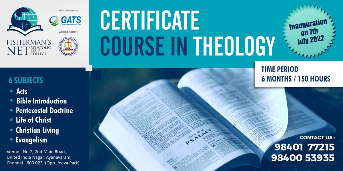 Fisherman’s Net Apostolic Bible College is a Ministry or the educational branch of The Cornelius Foundations, a religious trust (Regd No. 647/2010) under the Indian Trusts Act 1882 founded by Dr. Sandhya Ruban, in 2011 in Chennai, Tamil Nadu. 120 have graduated since its inception, serving the cause of the Church in the South as pastors, evangelists, and teachers, assisting in the Church Ministers.